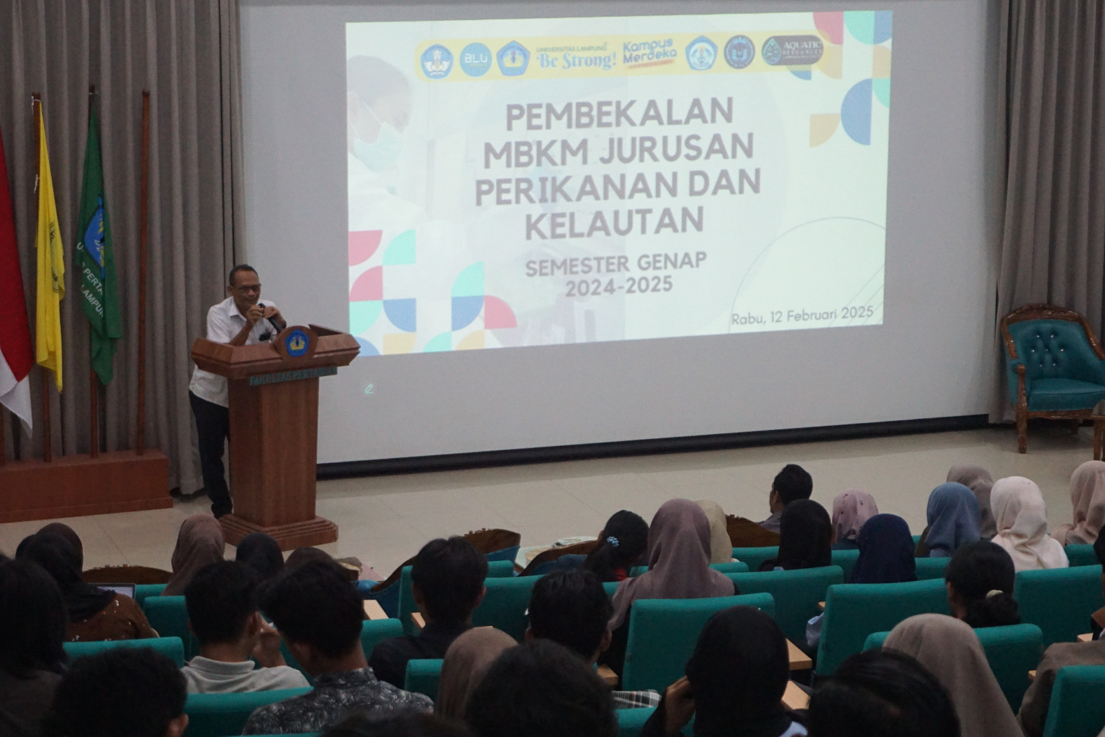 Jurusan Perikanan dan Kelautan, Fakultas Pertanian, Universitas Lampung pada Rabu, 12 Februari 2025 melaksanakan pembekalan Merdeka Belajar Kampus Merdeka (MBKM) bagi peserta MBKM periode Genap 2024-2025.